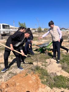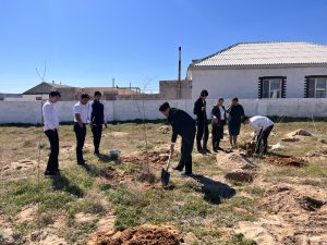 Іс-шара барысында мектеп ғимаратының ауласына 56 түп ағаш егілді. Олардың ішінде 26-ы – жеміс ағаштары, қалған 30ы біздің климатқа бейімделуіне оңай болатын көлеңке, оттегі болар ағаштар.