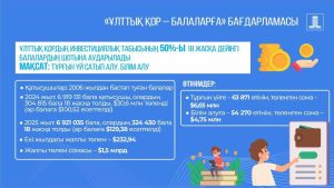 ➤ Бағдарлама ресми түрде 2024 жылдың 1 қаңтарында басталды. Оның шеңберінде 2006 жылдан бастап туылған әрбір балаға Ұлттық қордан жыл сайын қаражат аудару көзделген.