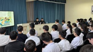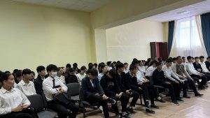 10–11 сынып оқушыларымен кәсіби бағдар беру мақсатында ҚР ҚК жоғары оқу орындарына түсу мүмкіндіктері талқыланды. Кездесуге ҚР ҰҚК Шекара қызметі Маңғыстау облысы бойынша Департаментінің жағалау күзеті екінші дивизионының командирі, 2-дәрежелі капитан Бүркітбаев Адил Камалович және 1-дәрежелі капитан Молжанов Нұрлан Серікканович арнайы қонақ болды.