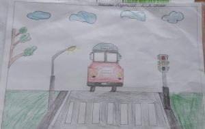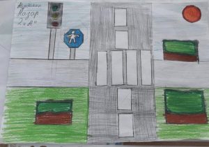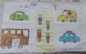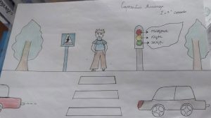 Балалар өз суреттері арқылы жолдағы қауіпсіздік ережелерін бейнелеп, белсенділік пен қызығушылық танытты.