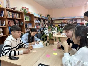 «Тіл мен тарих — ұлт тағдыры” қоғамдық-гуманитарлық пәндер бірлестігінің онкүндігі аясында мектебімізде 9-сыныптар арасында «Үш бәйтерек — үш ғұмыр» атты сайыс өткізілді. Ұйымдастырушы мектеп кітапханашылары Ақниязова Назгүл және Қазиева Айгүл.