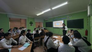 «Мың мамандық бәрі бар. Таңдап, талғап бірін ал!» атты кәсіптік бағдар беру апталығының жұмыс жоспарына сәйкес 7 «Ә» сынып жетекшісі Набиева Ардақ «Мамандық әлемі» тақырыбында ашық тәрбие сағатын өткізді.